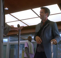 Houseovi zůstala na krku nemotorná čtyřbodová hůl, poté co mu fyzioterapeutka zabavila jeho hůl č.3. Jakmile House spatřil návštěvníka nemocnice s lepší holí, jak čeká na výtah, ihned ho vmanipuloval do výměny. |