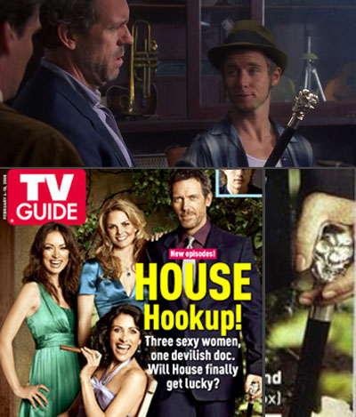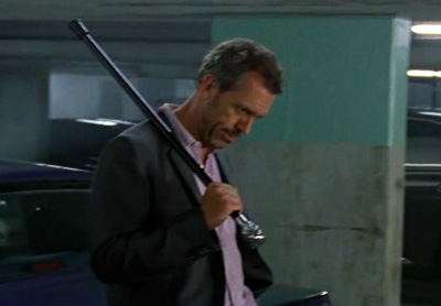 Po životní noci na místě neštěstí v Trentonu a dne doma bez hole v premiéře sedmé sezóny se House vrací do Fakultní nemocnice Princeton Plainsoboro (PPTH) v druhé epizodě sedmé sezóny se svou novou přítelkyní (jeho šéfka, dr. Cuddy) a novou holí. Možná byl inspirován smrtí své pacientky, která zase přinesla zrod nového vztahu, nebo změnil názor a řekl si, že přeci jenom to je bezva hůl. Ať už je to jak chce, je to příležitost pro nějaký ten jízlivý komentář a možná i pro dva. Když se Taub zeptá "A co ta hůl s lebkou?" House odpoví: "Hůl se zadkem v mojí velikosti neměli." | ![]() |